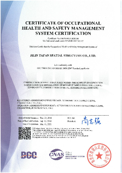 職業(yè)健康安全管理體系認(rèn)證證書(英文版)