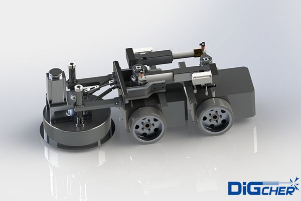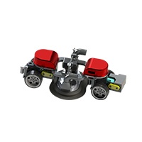 機(jī)器人采用四輪驅(qū)動(dòng),負(fù)載能力強(qiáng),可在在垂直面及天花板面任意行走;電機(jī)驅(qū)動(dòng),具有穩(wěn)定可靠的立面吸附措施;機(jī)器人前端的毛刷盤負(fù)責(zé)清理和回收模板表面的粉塵和殘?jiān)?br />